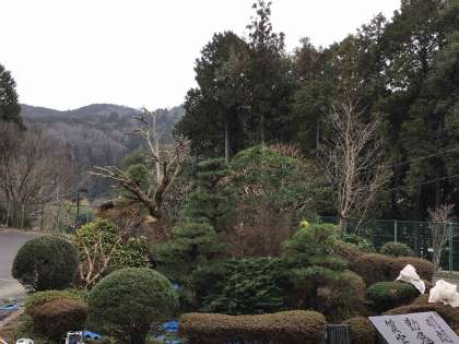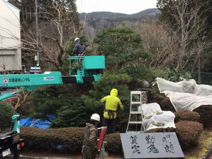 小雨が降る中、玄関前ロータリーの植え込みの剪定作業が行われています。卒業式に向けて、校内環境の整備も着々と進んでいます。