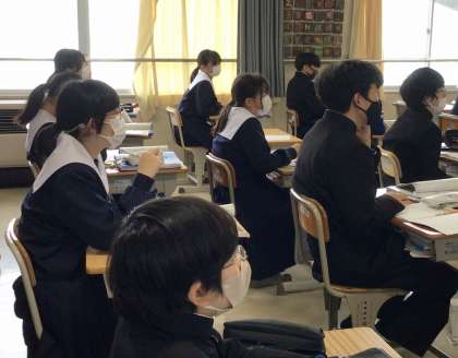 1年生の社会科では、室町時代の学習を進めています。野口町と楠木氏とのかかわり等、地域の歴史とのつながりが話題になり、生徒から「へえー」という驚きの声が上がっていました。3月8日には、石野地区の歴史について学ぶ校外学習も予定されています。