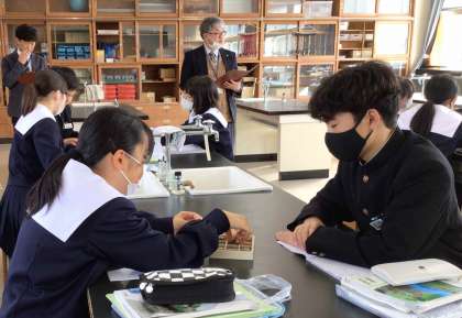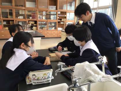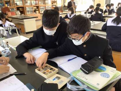 化石ってそもそも何だろう?という疑問をもちながら、堆積岩の観察をしました。化石からわかることを知り、授業のまとめでは、オーストラリアのサンゴ礁を実際に見てみたいという思いが発表される場面がありました。