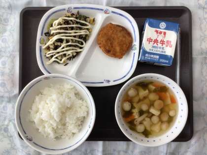 3/18 今日の給食 公開日 2024/03/18 更新日 2024/03/18 各学年から 今日の献立は、ふだま汁、骨太サラダ(マヨネーズ風ドレッシング)レンコンサンドフライ、ごはん、牛乳 でした。エネルギー:816kcal