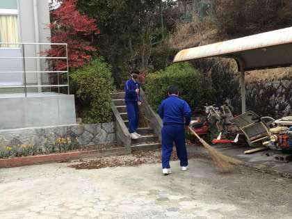 自転車を置き、1・2年生が教室へ向かう通路では、3年生が落ち葉を掃く姿がありました。後輩のためにと考えて、自ら活動する姿がとても輝いてみえました。