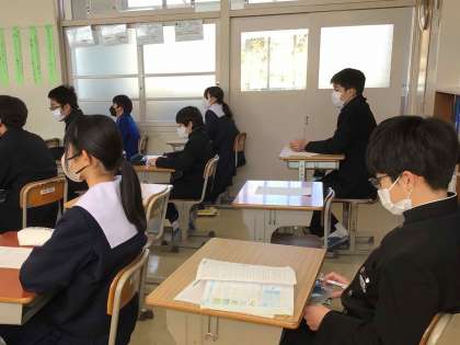 3年生が卒業した学校は、今までよりも静かで寂しさも感じます。卒業式が終わり、教室では通常の授業が行われています。英語科の授業では、英語で思い出を紹介していく予定です。