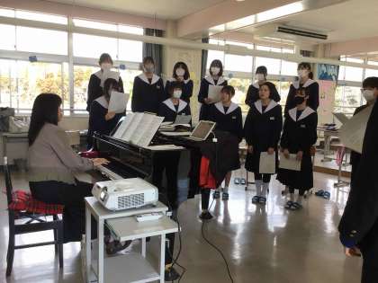 2年生の音楽では、合唱練習に取り組んでいました。体が自然に動いてしまうくらい、歌詞に思いを込める歌い方をしている生徒もいました。歌を届けたい人を思い浮かべ、心を込めて歌う姿が素敵でした。