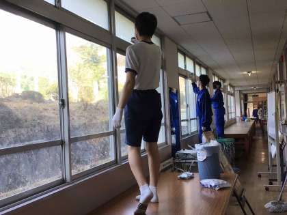 5・6時間目を使って1、2年生の教室と特別教室のワックスがけを行いました。ピカピカになった床を見て、「新しい1年生が喜ぶね」と話す2年生の声が聞こえてきました。普段掃除できない窓ふきを行っている生徒もいました。着実に、新年度の準備が進んでいます。