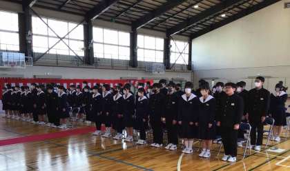 冷たい空気が心地よい緊張感を生み出していた体育館で、令和5年度の修了式を行いました。2年生は全員出席で、最高学年への意欲を感じました。