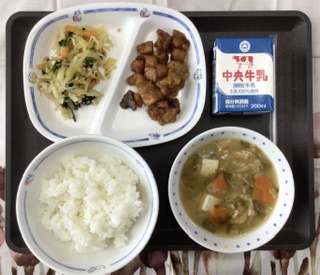 4/15 今日の給食 公開日 2024/04/15 更新日 2024/04/15 各学年から 今日の献立は、あおさ汁、炒り大豆あえ、レバーとジャガイモの甘辛煮、ごはん、牛乳、でした。エネルギー:808kcal