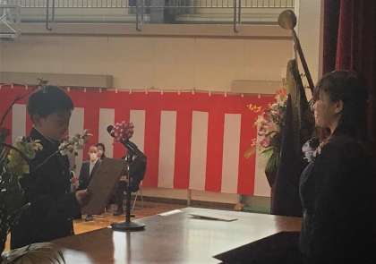 満開の桜が咲き誇る中、多くのご来賓に祝福され、45名の新入生が石野中学校に入学しました。久しぶりの1学年2クラスとなる80期生です。