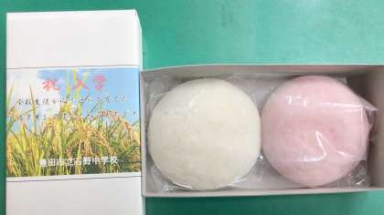 入学式で、市議会議員の鈴本昌秋様よりご祝辞をいただきました。その中で、石野中の伝統である「紅白餅」についてお話がありました。鈴木敏朗さんのお力添えがあり、毎年全校生徒で育て、収穫するお米で作られたお餅です。