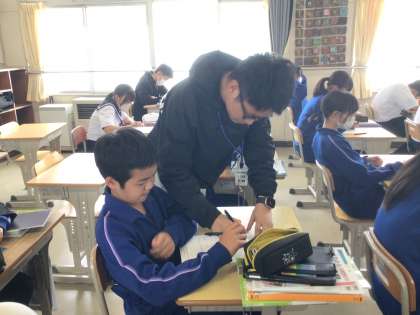 この写真は、4月18日(木)の社会科の授業の様子です。