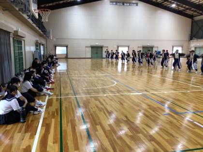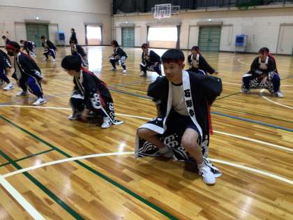 4月19日(土)の2限は、3年生と一緒に石中ソーランの練習を行いました。