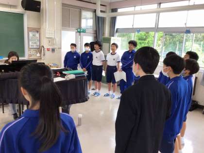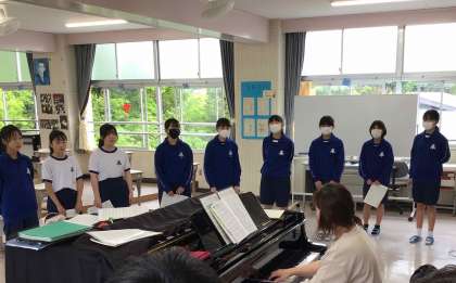 1年生の音楽の授業で「翼をください」の合唱が聞こえてきました。楽しそうに歌う姿が印象的でした。音楽の授業がきっかけとなり、生涯にわたって音楽を楽しむ姿勢が育まれるようにしていきます。