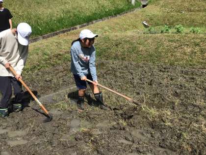 初めは上手くできなかった子も、だんだんコツをつかんで、上手に田おこしをすることができました。