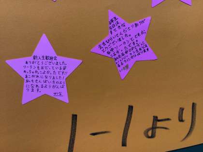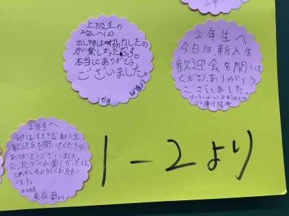 新入生歓迎会後、1年生は2・3年生に感謝の気持ちを伝えるメッセージを書き、教室に届けました。「私も先輩のようになりたい」という言葉が多くありました。