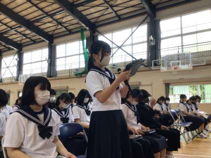 中には、自主的に何度も挙手をしている生徒もいました。今後、多くの生徒が、「自分たちの手で石野中学校を盛り上げていこう」という気持ちをもち、頑張ってくれることを期待します。