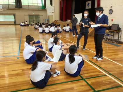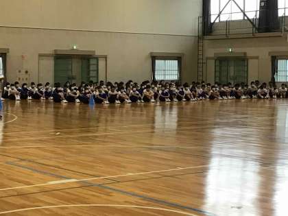 雨天のため、体育館で練習しています。連休明けですので、体調に留意しながら進めています。スタッフミーティングやリレーの動きの確認、ソーランの練習をしました。