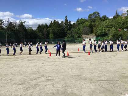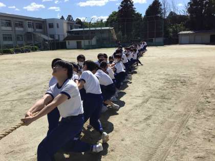 体育祭練習の3日目です。爽やかな青空の下で「綱引き」の練習をしました。