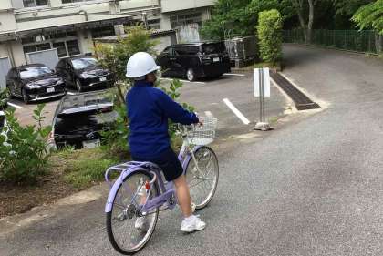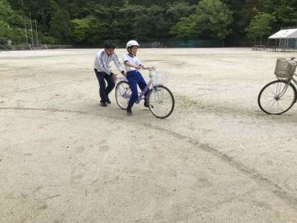 畑を耕して培養土を入れることによる土改良と、自転車に乗る練習に取り組みました。自転車練習は、個人の技量に合わせた内容を工夫し、安全に乗れるようにしています。
