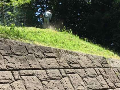 校内整備員の敏朗さんが、教員では対応できない校内の整備をしてくださっています。体育祭前日の今日は、法面の草刈りをしてくださいました。気持ちのよい環境で教育活動を推進できることが、とてもありがたいです。