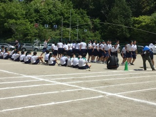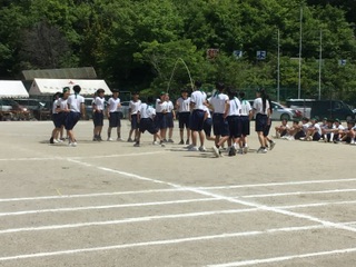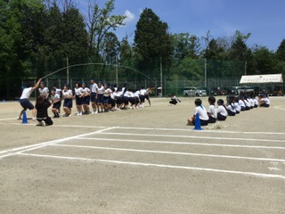 長縄の様子です。8の字跳びと大縄跳びを行いました。声をかけ合い、励まし合い称え合う姿が輝いていました。
