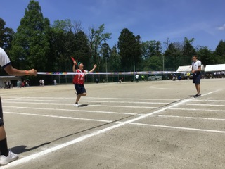 全員リレーの様子です。バトンをつなぎ、最後まで走り切る姿は、勝敗よりも尊いと感じます。