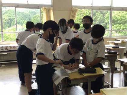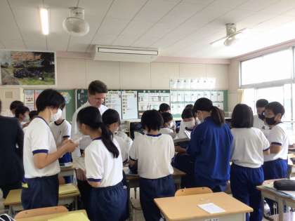 ALTのジョン先生と一緒に、canを使って表現することができるように練習しました。級友や教員に「Can you 〜?」と問いかけ、友達ができることを新たに知ると「すごい!」と会話がはずむ様子が見られました。
