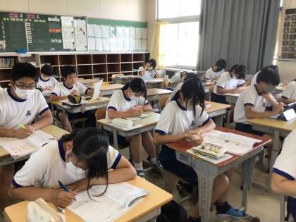 今日から教育相談日課が始まったのですが、相談を待っている時の教室の様子は、写真を見れば一目瞭然。誰一人喋ることなく、真剣に学習に取り組む雰囲気ができています。