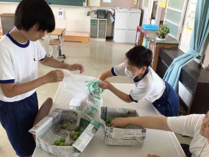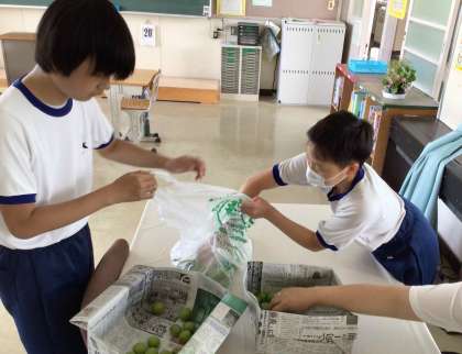 3・4組では、製作的・生産的活動を通して、職業生活や家庭生活に必要な基本的知識・技能が身につくようにしています。梅取り、ひまわりの種まき、畑の水やりなど、様々な活動に取り組んでいます。