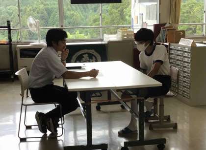 一人一人の生徒が抱えている悩みや不安を早期に発見したり、学習や生活などの様子を把握したりするために、教育相談を実施しています。生徒の話にしっかり耳を傾け、安心して学校生活を送ることができるように心がけています。