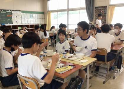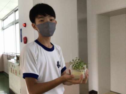 初めての定期テストを受けた1年生は、ほっとした表情で給食を食べていました。テストに慣れている3年生は、給食後に技術科で育てているブロッコリースプラウトの世話をするゆとりがあり、さすがです。