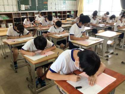 2年生は、社会と数学の2教科でしたが、最後まで真剣に問題に向き合っていました。明日は残りの3教科が行われます。本日、最後の追い込みを期待しています。