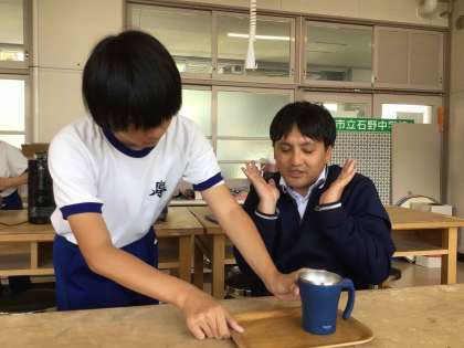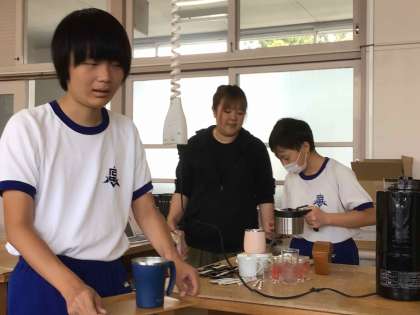 職場体験学習を見据え、カフェで働くために必要な学習(お金の計算、接客の仕方等)に取り組みました。複数のことに気を配ることはなかなか難しいですが、気持ちのよい対応ができるように体験を通して学んでいます。