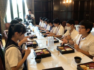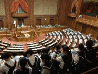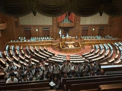 国会議事堂を見学しました。社会の教科書で見た場所に立ち、議場を見入っていました。昼食は国会議事堂の中の食堂でボリュームたっぷりのお弁当をいただきました。