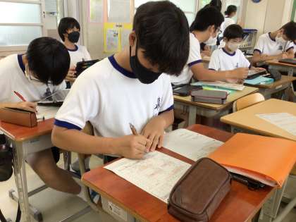 5月31日(金)、職場体験学習に向けて、本番用のワークシートに行き方等を記入しました。