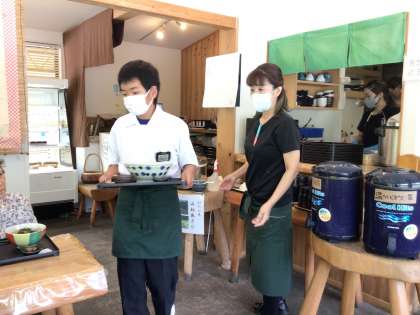 実際に接客を行っていました。料理を運ぶのは勿論のこと、お客さんが来店するといち早く「いらっしゃいませ」と声をかけていました。