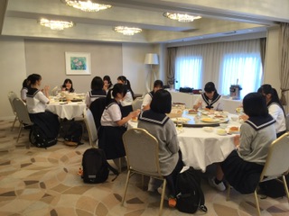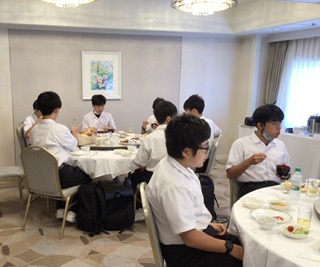 今日も晴天に恵まれています。生徒は全員元気に起床し、朝食を食べています。