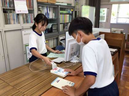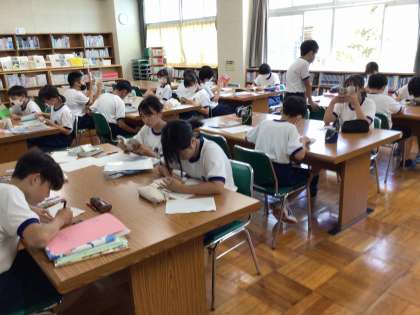 1年生の国語科では、図書室の本を使って「読書記録」を