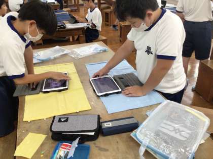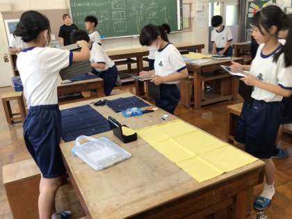 1年生の家庭科で、ファイルカバーの作製に取り組んでいます。