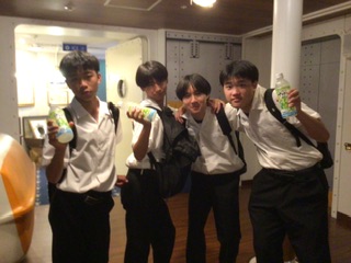 夢の国からシャトルバスでホテルに戻り始めました。楽しかったです!とみんな笑顔いっぱいです。