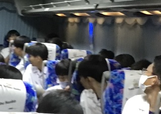 予定よりも少し早めに浜松サービスエリアを出発しました。車内では、生徒がこの旅行中に見つけた友達の素敵なところや、自分の成長を発表しています。