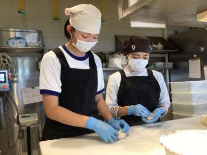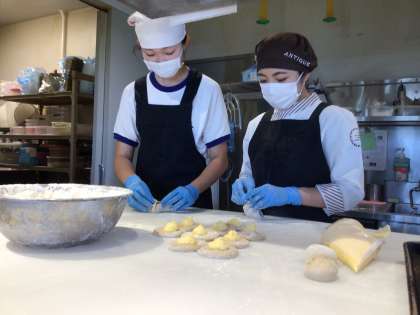 お店の方にアドバイスをしていただきながら、実際にパンを作っていました。