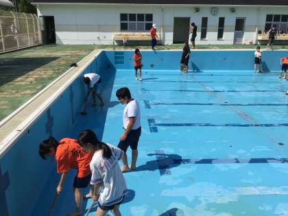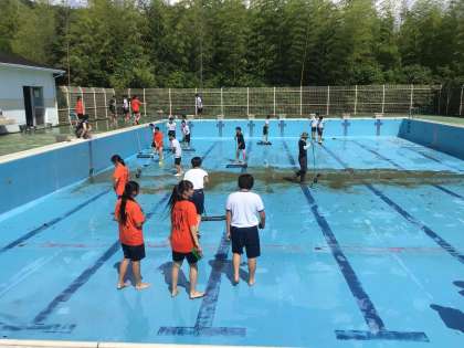 3年生のおかげで、プールがきれいになりました。気持ちよく水泳の授業が実施できそうです。