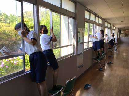 本年度から、部活動は全員参加ではなく、希望入部制としました。ただし、下校時の安全確保のため、部活動に所属していない生徒も部活動終了時刻までは学校で自習等に取り組んでいます。戸締りや窓ふき等のボランティア活動に進んで取り組む生徒の姿もあり、感心します。