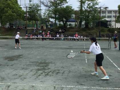 6月22日(土)、美里中学校会場で、夏季市内大会(ソフトテニス女子の部)の団体戦、個人戦が行われました。