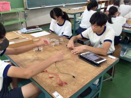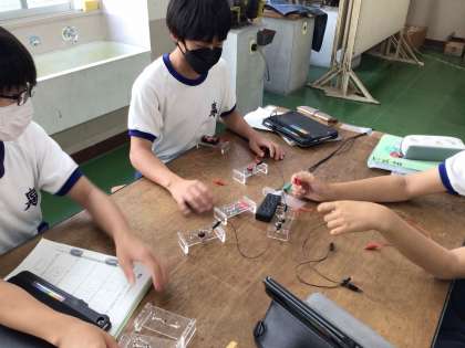 2年生の技術科では、エネルギー変換の領域で、電気回路を学んでいます。