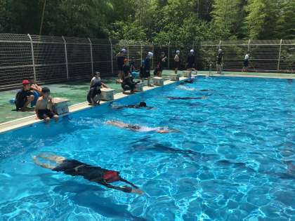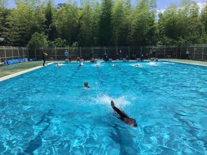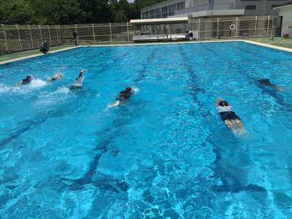 壁を蹴って進む「蹴伸び」の練習をしました。