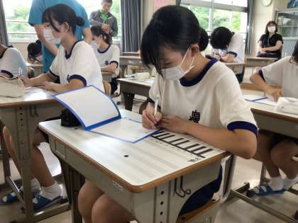 夢の教室の途中、配付された夢シートに、今頑張っていることや最近の悩み、将来のことなどを記入しました。今回記入した夢シートは、今後夢先生に提出をし、コメントを頂ける予定です。