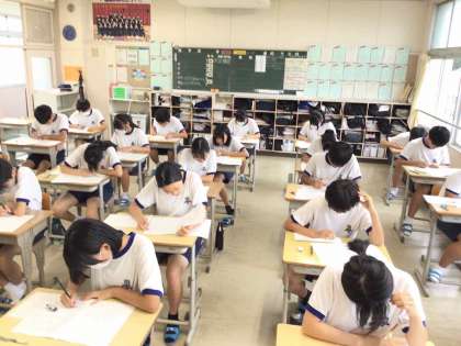 3年生は1時間目から学習診断テストに取り組んでいます。自分の力を知り、今後の学習や進路選択の参考にします。今年度から、後日、問題を返却します。家庭学習でも活用してください。