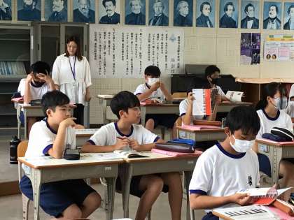 7月16日から19日まで、アメリカから帰国した1年生が体験入学で登校しています。小学校まで一緒に過ごした友達との久しぶりの再会を喜ぶ姿がありました。短い期間ですが、日本の中学校ならではの経験をしてほしいと思います。