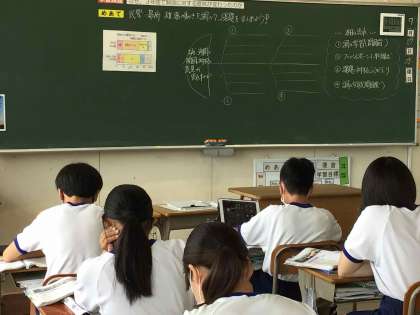 2年生の社会科では、学習課題を解決するために、思考ツールを活用してまとめる学習を積み重ねています。今日は、魚の骨の形「フィッシュボーン」を使って開国について考えました。
