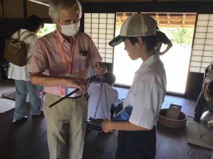 校外学習では、昔の生活を体験的に学ぶこともできました。吹き抜けで風通しの良い家の造りなど、人々の工夫や知恵を知ることもできました。